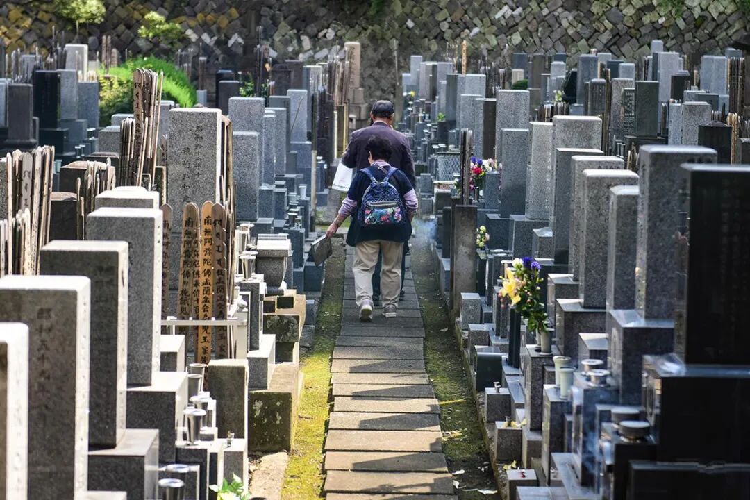 (日本关东地区一处墓园,相当一部分墓碑即用芝麻黑制成)